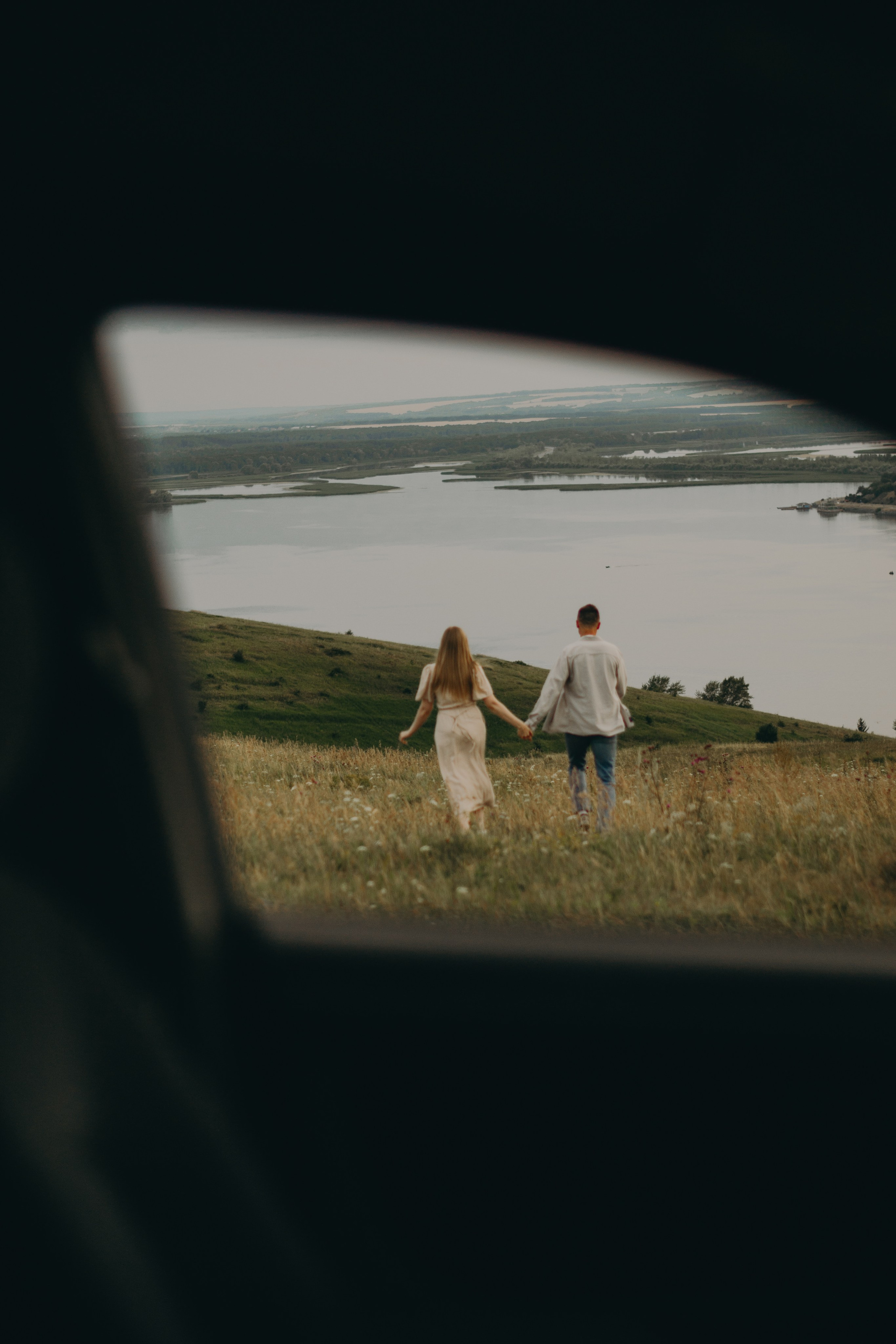 Свидание для влюблённой пары, где они наслаждаются закатом, друг другом, танцуют, а после заката их озаряет свет фар машины.